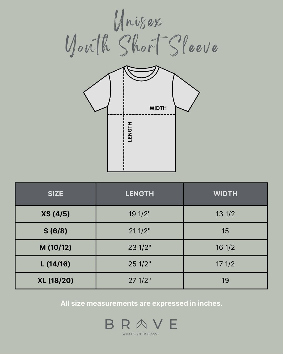 The Brave Like Blaire Youth Short Sleeve Tee was created to spread awareness, encouragement, and support for Blaire as she continues her fight against stage IV colon cancer.